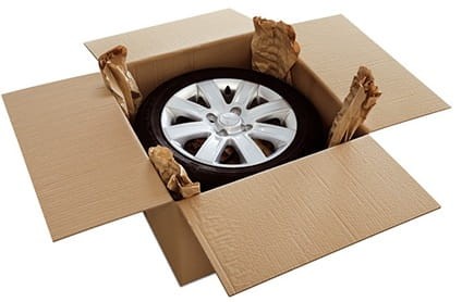 Duże pudło klapowe, wykonane z 3-warstwowej, dedykowane do wysyłki opony samochodowej.